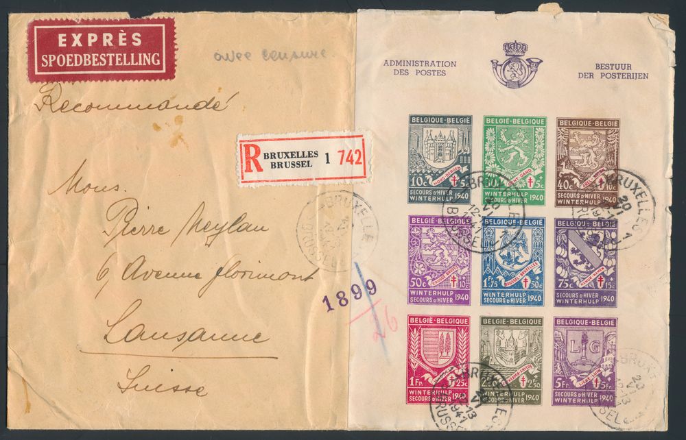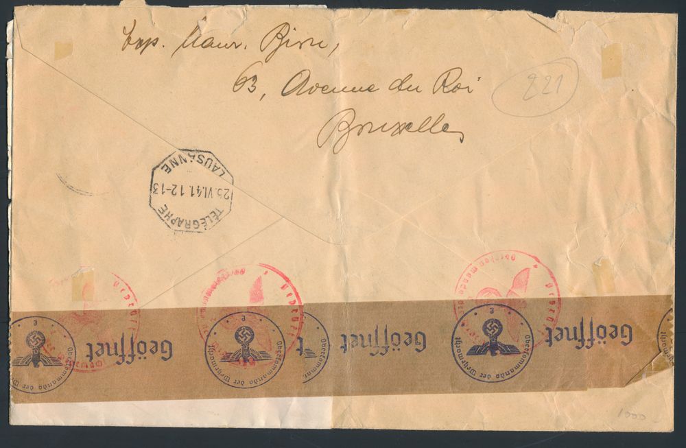 1896 image1941 BL 10A on registered express delivery, from Brussels, dated 20 June 1941, to Lausanne (Switzerland), with a censorship band on the back, vf/f(Image 1) (Image 2)