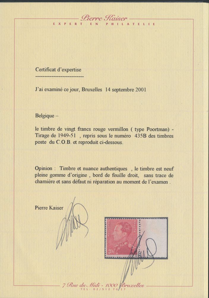 1883 nh imageN° 435 B "20fr. vermilion red" with photo certificate, with margin, vf (OBP €465)(Image 1) (Image 2)
