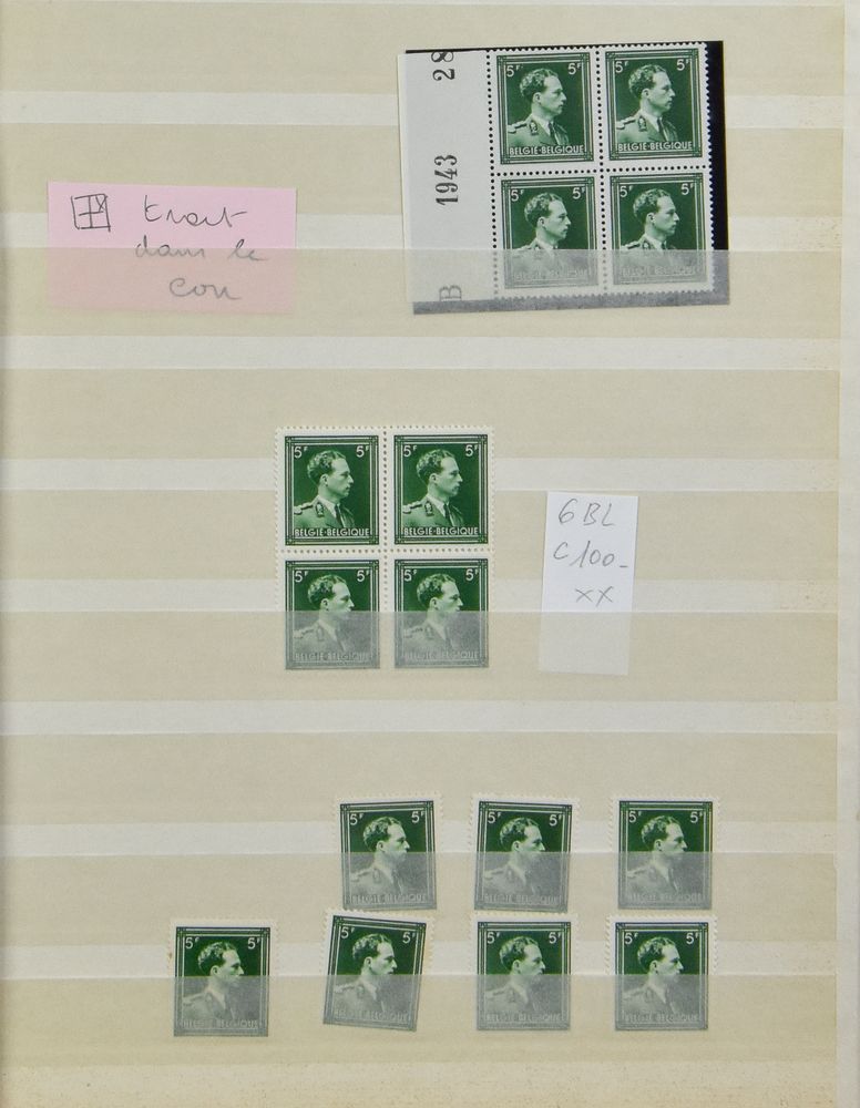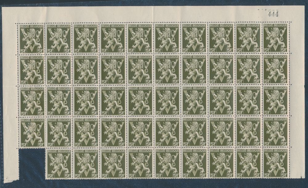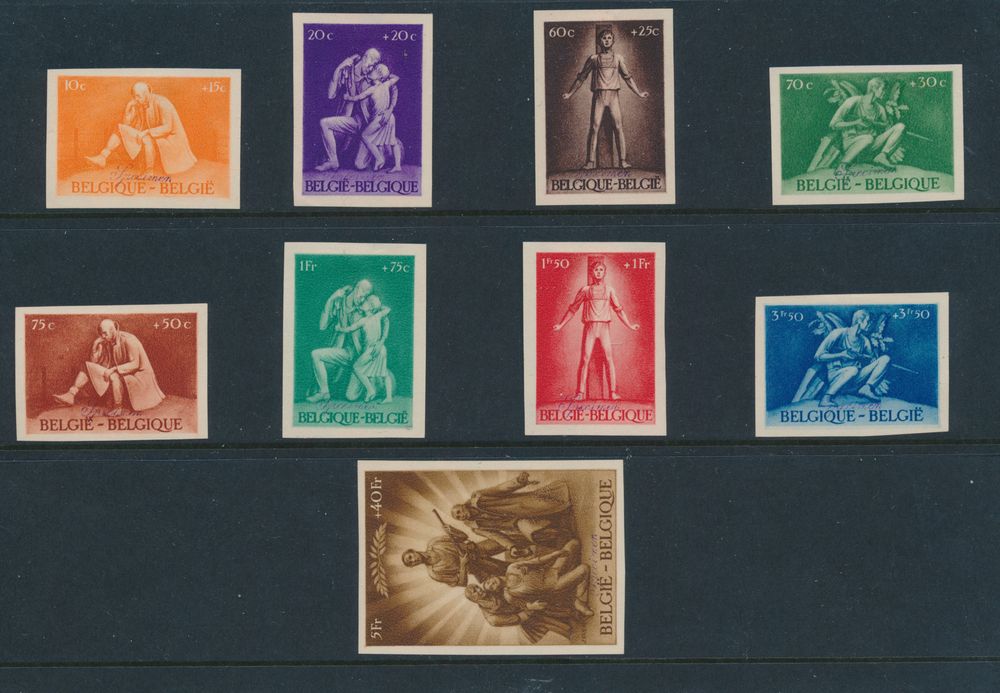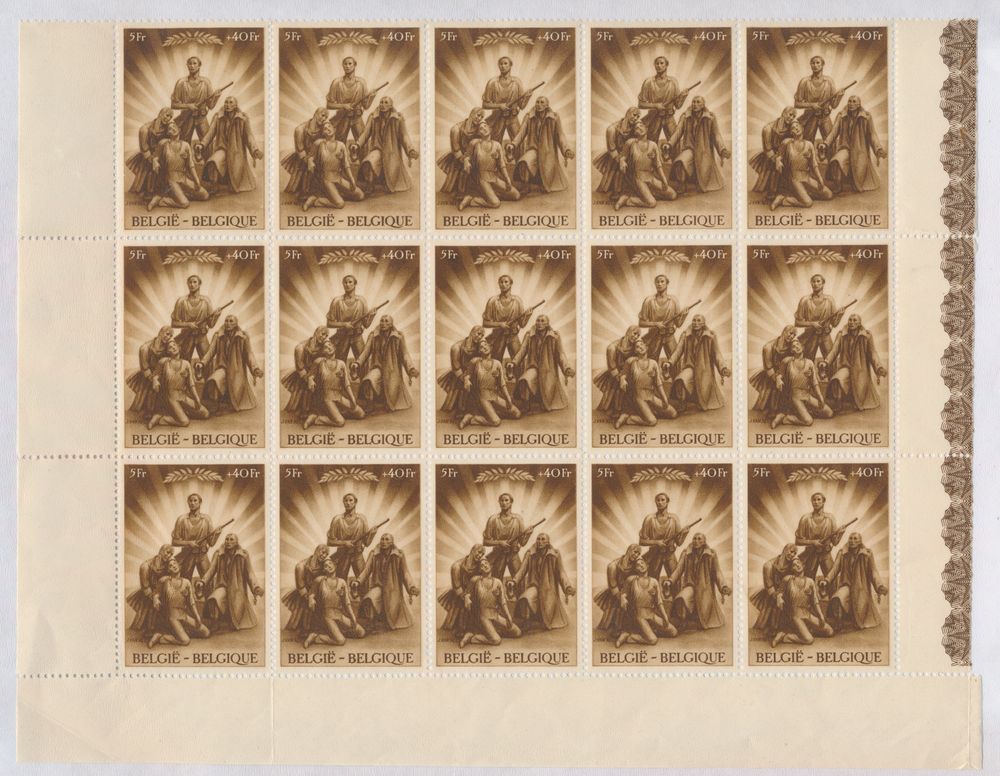 1915 nh imageN° 701/709 "Prisoners of war - complete set" (15x) + 688A "5fr. olive Belgium" (sheet of 49), vf (OBP €364.25)(Image 1) (Image 2)