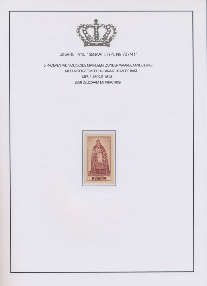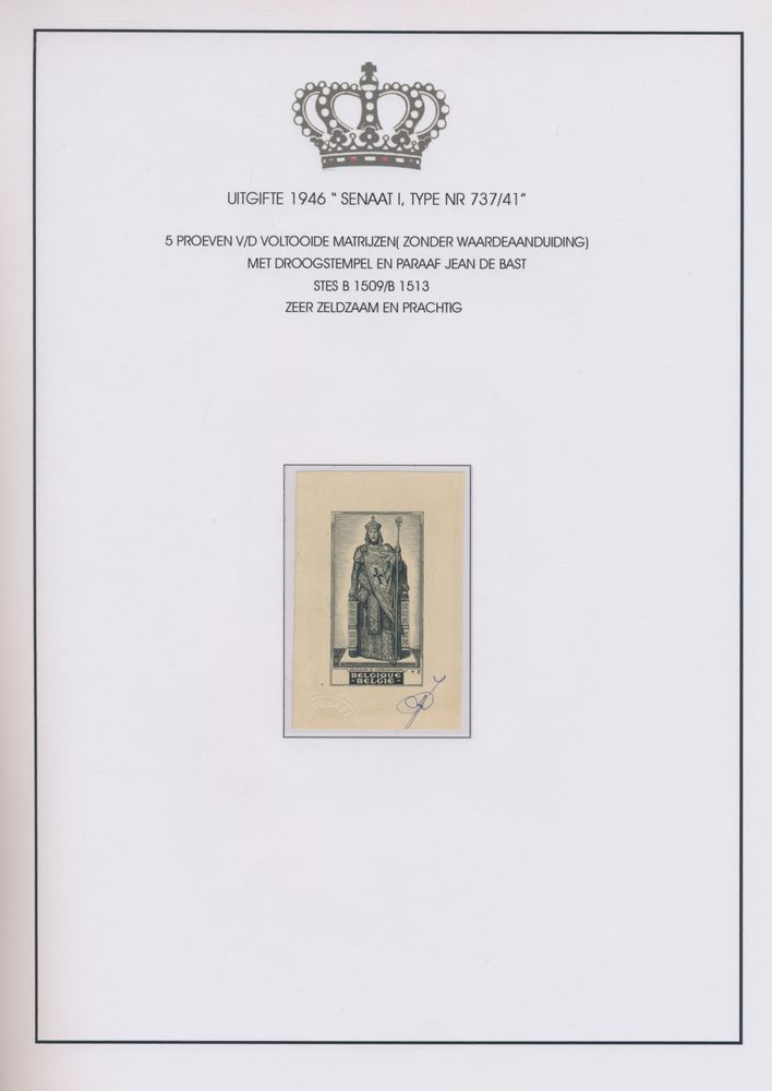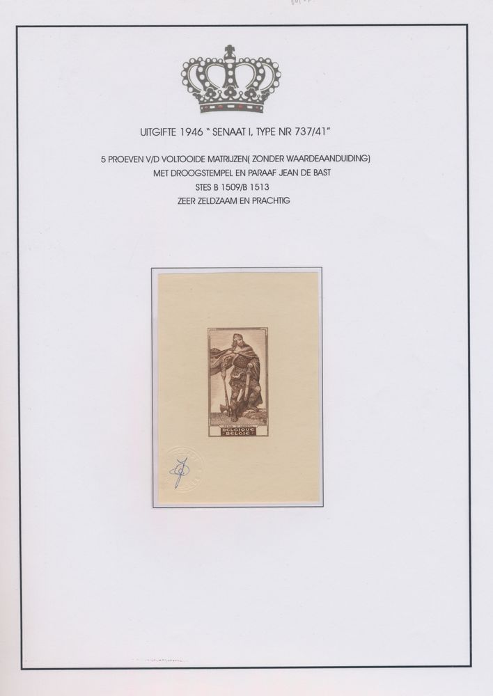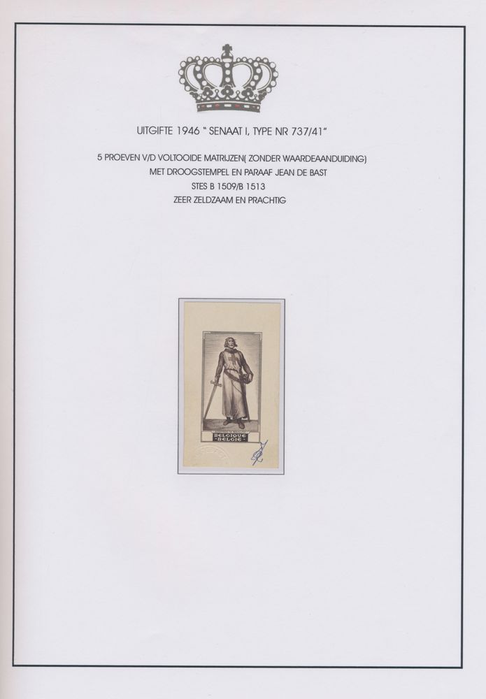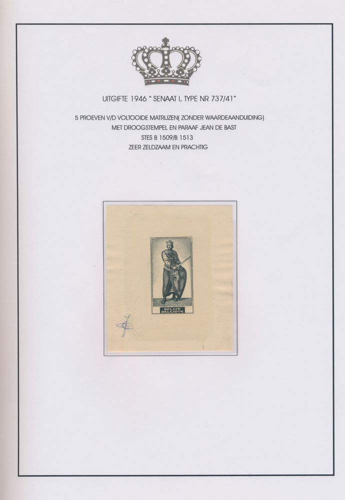 1919 imageEssays v/d mould "Portraits v/d Senate, type set 1 to 4", v/d 17 portraits, designed by Master engraver Jean De Bast, almost all initialled by him- beautiful item.(Image 1) (Image 2) (Image 3) (Image 4) (Image 5)
