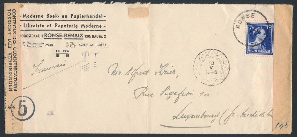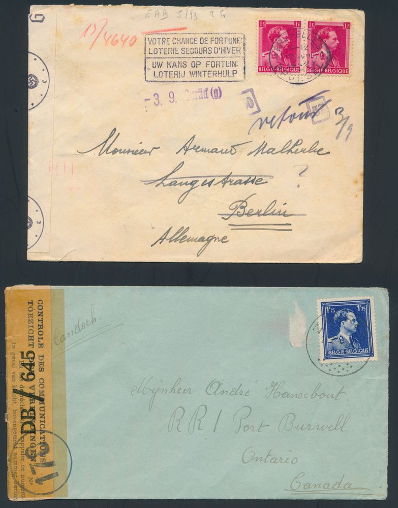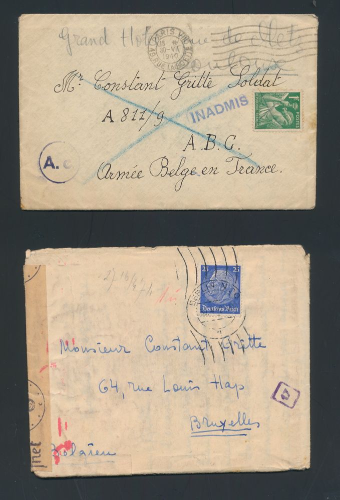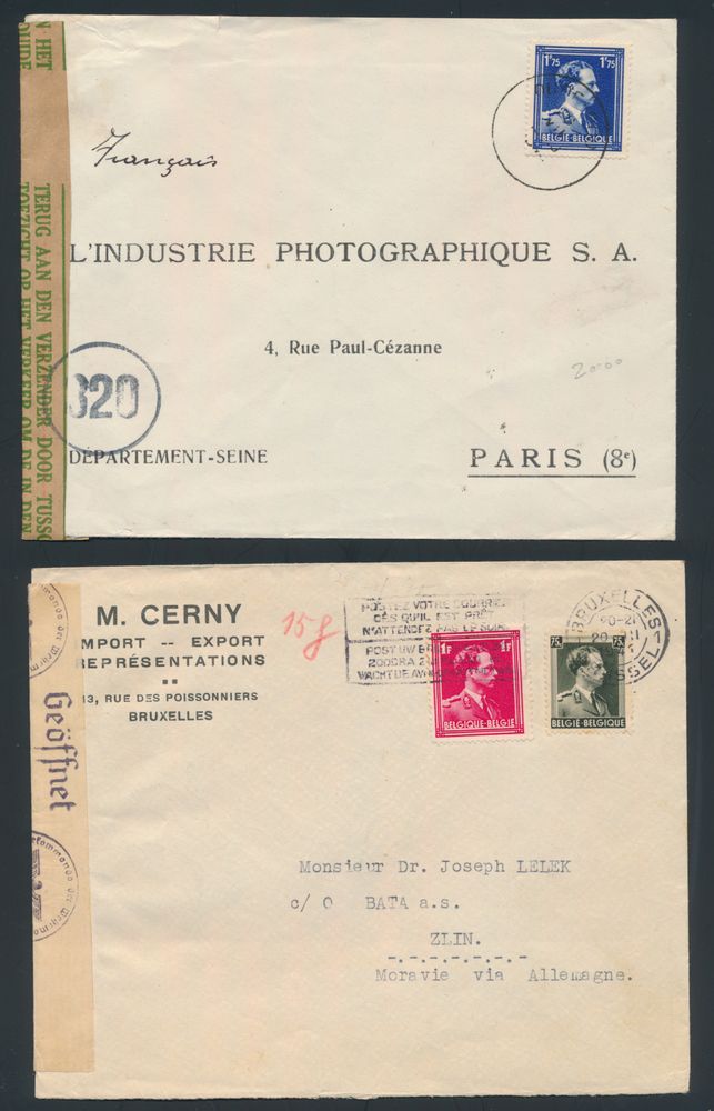 1903 imageBelgian presence in France, letter from Paris to Armée Belge en France, German censorship + censorship marks of refugees in Brussels, Toulouse reply stamp.(Image 1) (Image 2)