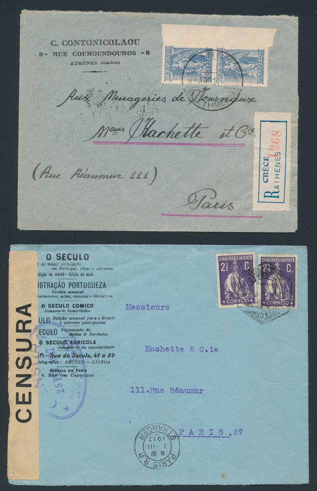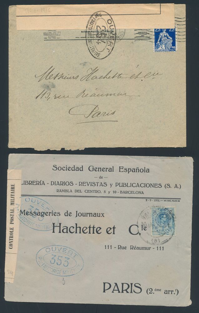 1902 imageCensored mail (50x), from Spain, Greece, Switzerland, etc., mostly destined for Paris (France), very nice accumulation, vf/f(Image 1) (Image 2)