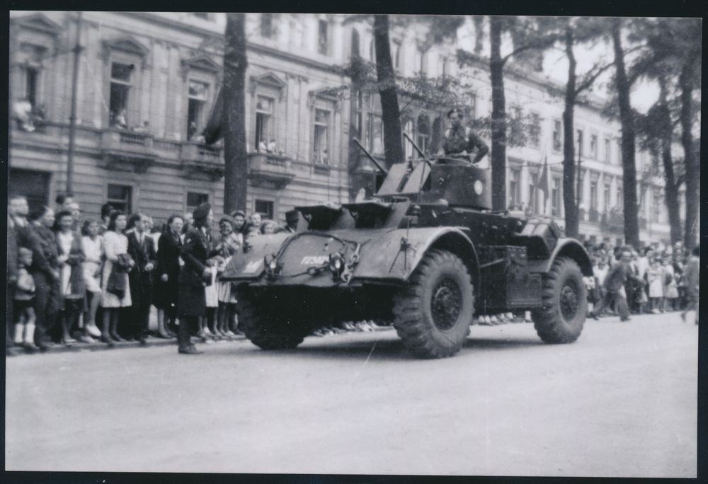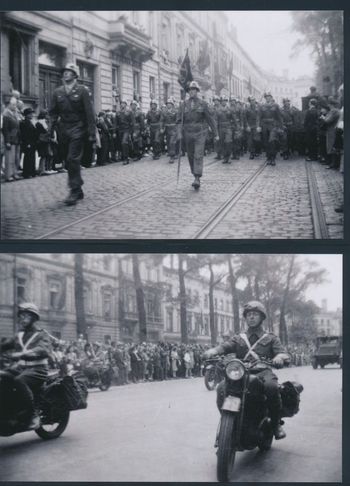 1905 image1944, three photos of the liberation parade by British troops in a festive Brussels in September 1944, and two photos of families leaving or arriving, vf(Image 1) (Image 2) (Image 3)