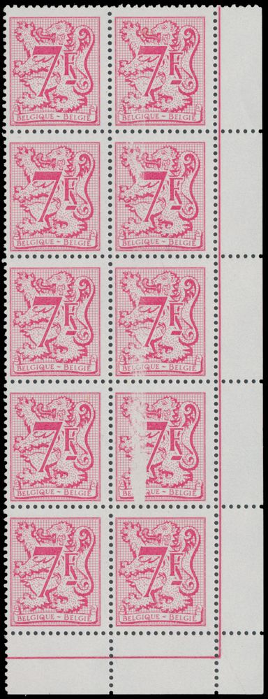 1940 nh imageN° 2051 P7-Cu "7fr. red" in sheet section of 10 with white smudge over part of stamps, vf(Image 1)