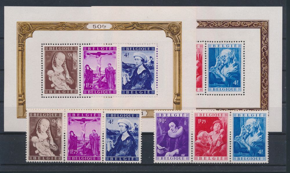 1931 nh imageBL 27-V2 + n° 792/97, the blocks and stamps from blocks, Jordaens and Van Der Weyden BL 27 with variety "emerald on forehead", vf (OBP €880)(Image 1)