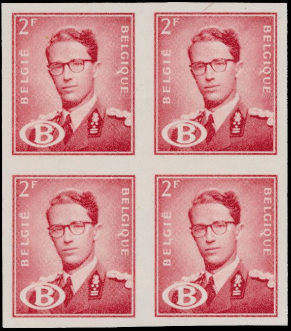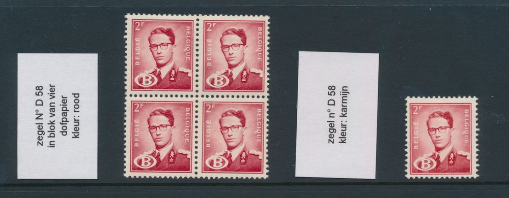 1964 nh/og/0 imageService n° 58 "2fr. red", in block of four with the colour red 5 (1 stamp *) and 1 stamp in carmine (hinge), vf (OBP €200)(Image 1)
