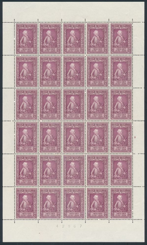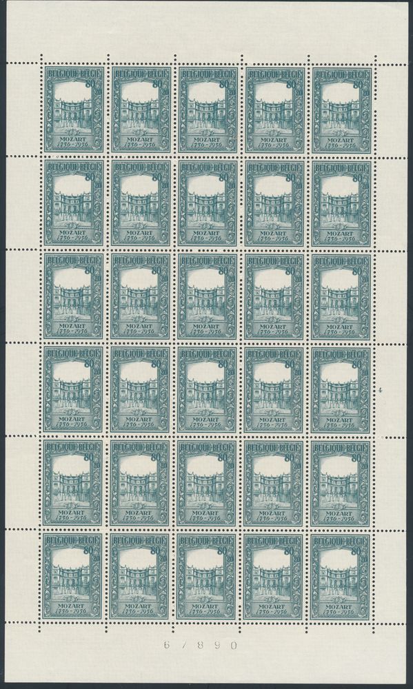 1974 nh imageN° 987/89 'Mozart' (Sheets and sheet parts of 30), vf (OBP €405)(Image 1) (Image 2) (Image 3)