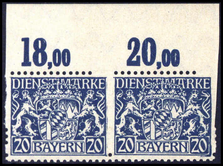 20 Pfg., waagr. Paar vom Oberrand im Plattendruck, dabei die äußeren Seiten teilweise ungezähnt, li. Marke postfr., re. ungebr. (leichte Mgl.), Kurzbefund Bauer BPP