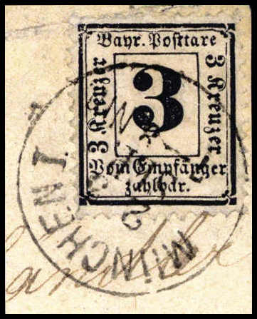 3 Kr., schönes Pracht-Bfstk. mit klarem K1 MÜNCHEN I. Katalogpreis: 600,-