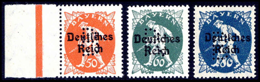 1920, 5-80 Pfg., eingelochtes "B", ungebr. Serie, teils kl. Mängel, teils sign. Katalogpreis: 280,-