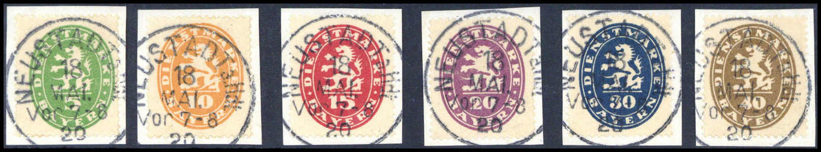 5-40 Pfg., sowie 1¼, 2½ und 3 Mk., tadellose Bfstke. mit einheitl. und besonders schönen Stempeln NEUSTADT a.Hdt. 18/5 20, sign. Infla. Katalogpreis: 350,-+