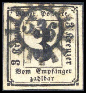 3 Pfg., tadellos gestempelt. Katalogpreis: 140,-