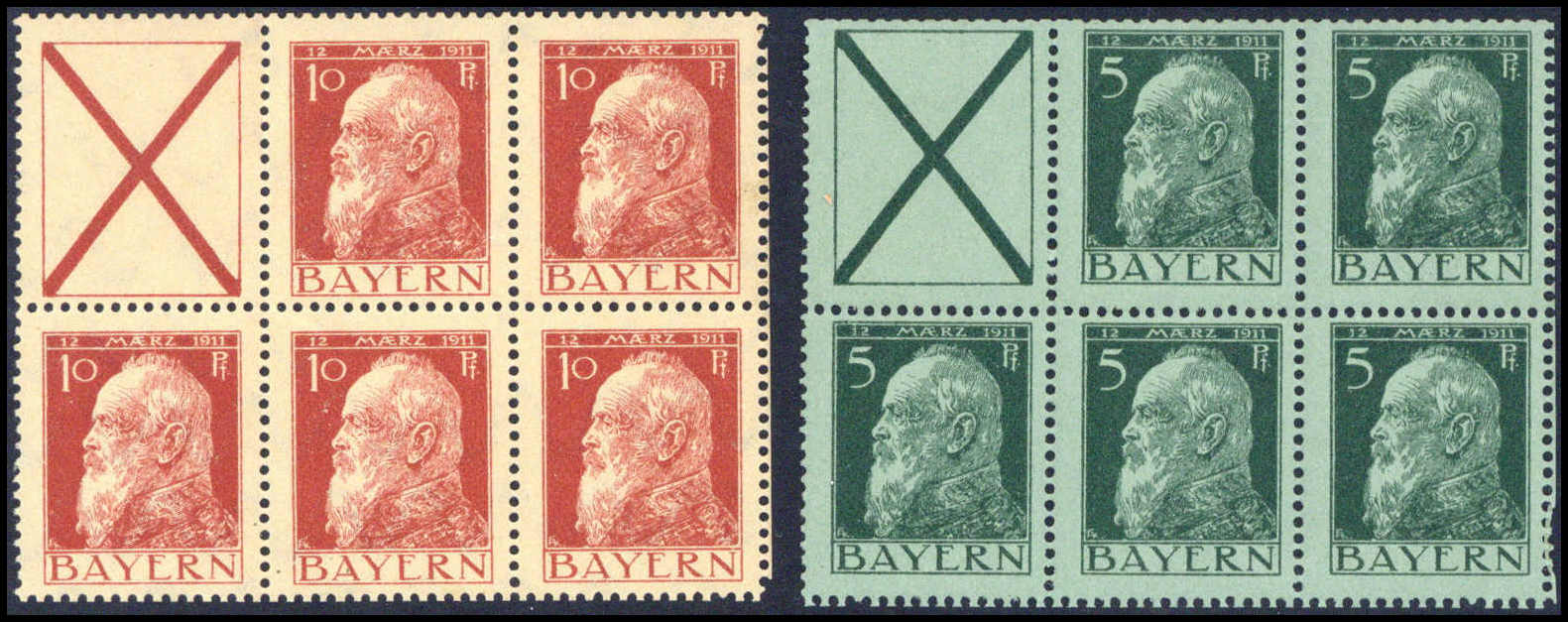Heftchenblätter 5 Pfg. grün und 10 Pfg. Luitpold je mit Andreaskreuz, tadellos ungebraucht. Katalogpreis: 240,-