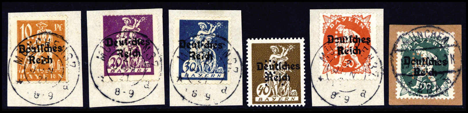 1920, 10-60 Pfg. mit eingelochtem "R", tadellose, schön gestplt. Briefstücke (40 Pfg. ungebr.), sign. Infla, Helbig BPP. Katalogpreis: 1.700,-