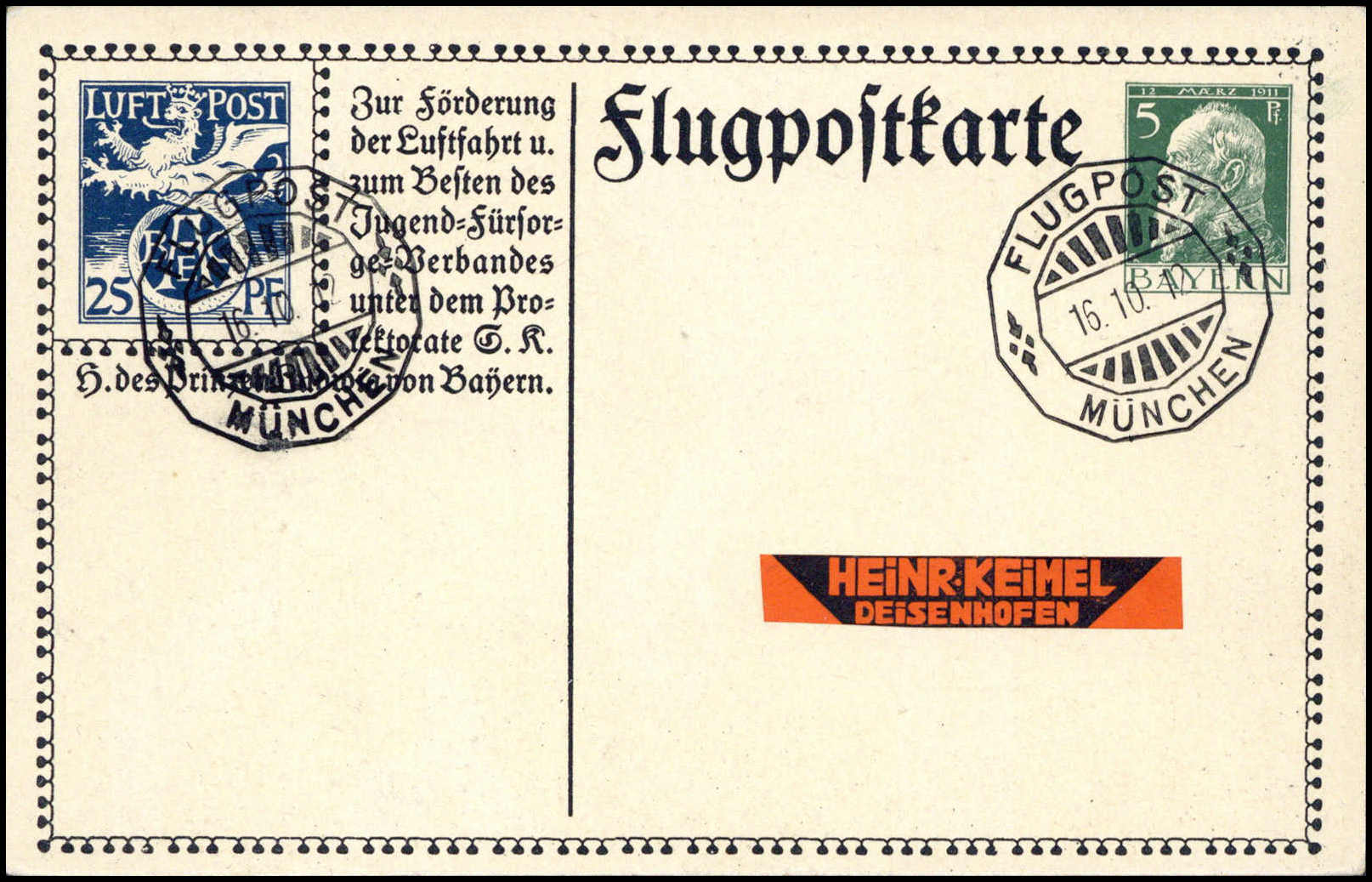 Zwei amtliche Sonderflugpostkarten 25 Pfg., gestplt., SFP2 leichte Beförd.-Spuren