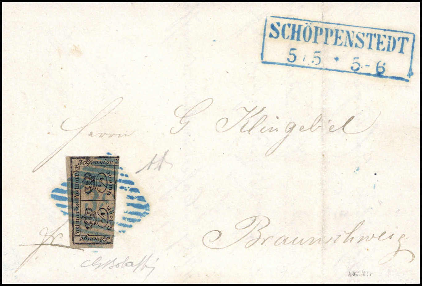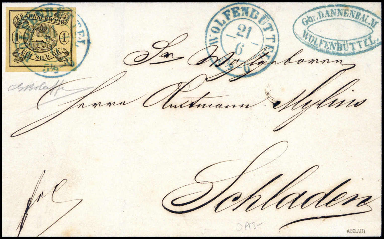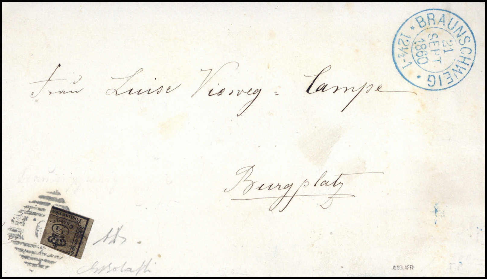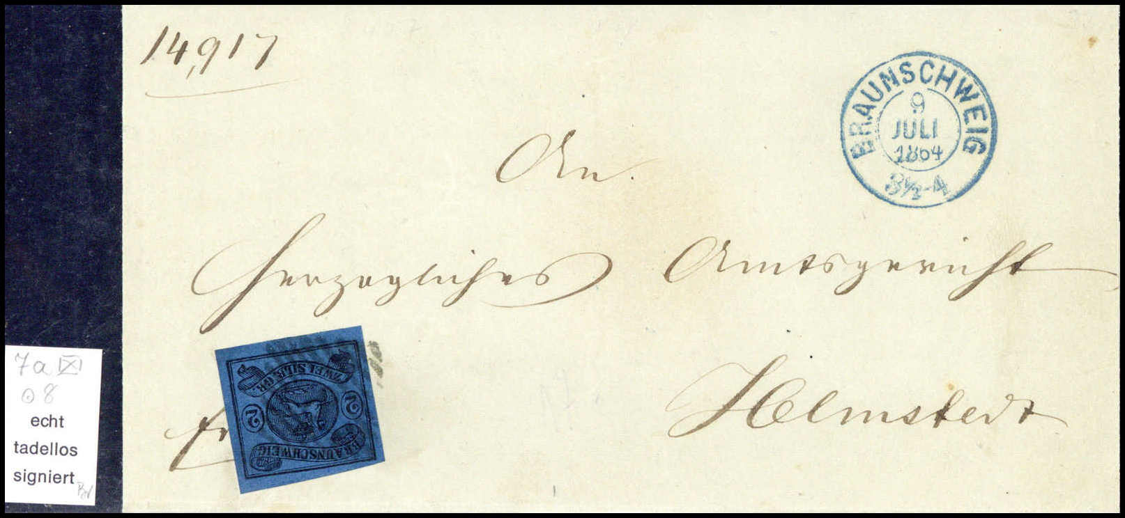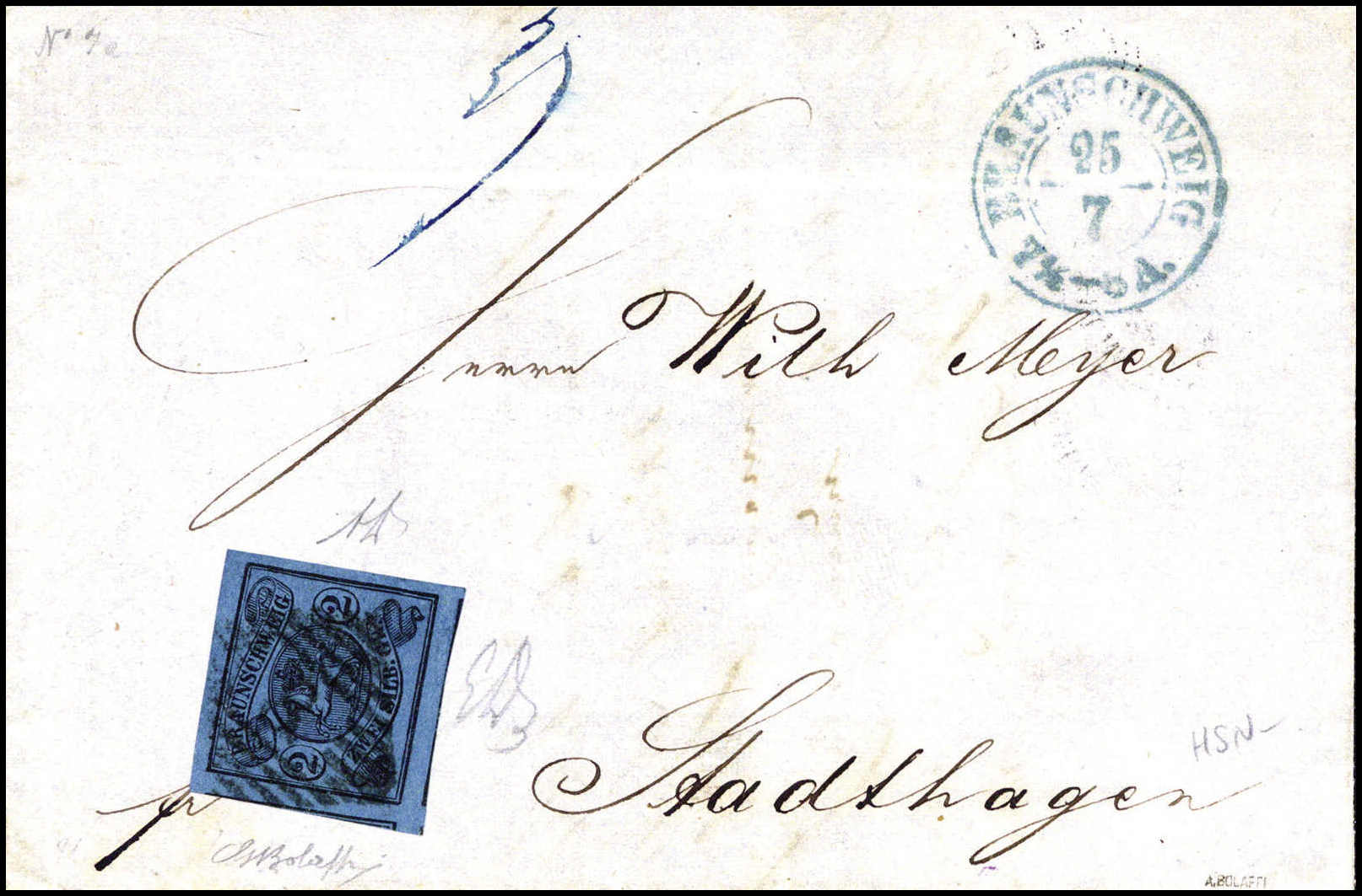 ½ Ggr., Luxus-Ortsbrief m. Stempel "9" und blauem K2 BRAUNSCHWEIG, sign. Diena, Bolaffi