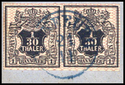 1/30 Th., besonders schönes waagr. Luxuspaar auf Briefstück mit idealem blauen K1 LÜNEBURG, Fotobefund Berger BPP