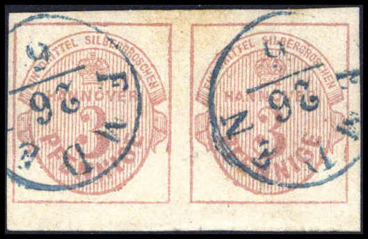 3 Pfg., waagr. Prachtpaar, vorzüglich geschnitten, unten mit Bogenrand (winz. unfrisch), sauber aufges. K2 EMDEN, sign. Drahn. Katalogpreis: 1.000,-+