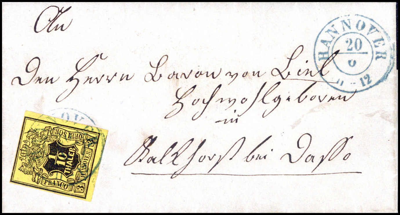 1/10 Th., kleiner weißer Luxusbrief mit klarem blauem K2 HANNOVER. Katalogpreis: 150,-