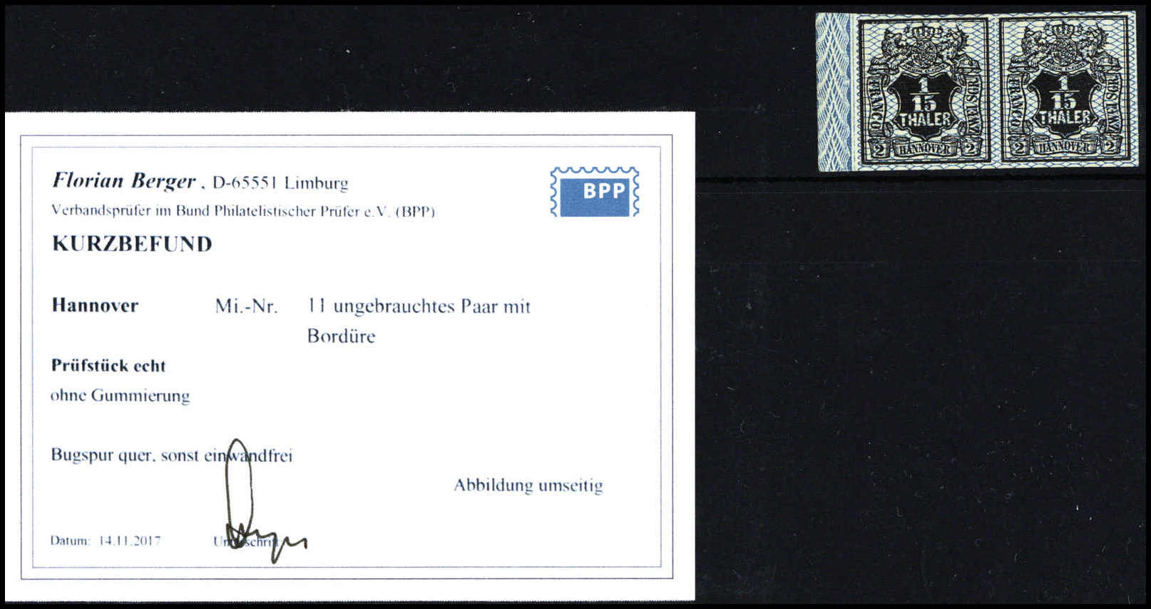 1/15 Th., ungebrauchtes, waagr. Paar o.G., li. mit Bogenrand und Bordüre. Abgesehen von einer leichten waagr. Knitterspur in tadelloser Erhaltung. Ungebrauchte Einheiten dieser Marke sind außerordentlich selten (bei Mi. nur mit "-,-"