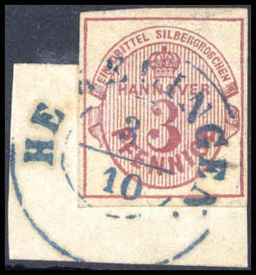 3 Pfg., leuchtende Farbe, wundervolles Luxus-Bfstk. mit blauem K2 HANNOVER, sign. Jäschke-L.BPP
