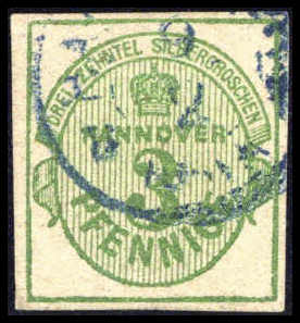 3 Pfg., breitrandiges und sehr tieffarbiges Luxusstück mit gestochen klarem K2 ELZE, sign. M.K. Maier, Grobe, Fotoattest Jäschke-L.BPP. Katalogpreis: 1.200,-