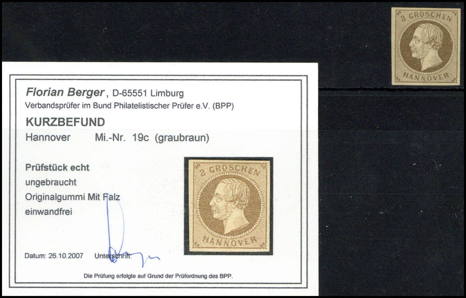 in der hier gezeigten Form vom Bogenrand mit Reihenzahl eine Hannover-Rarität, Fotoattest Jäschke-L.BPP. Katalogpreis: 3.000,-+