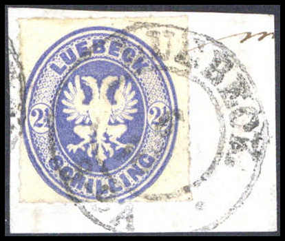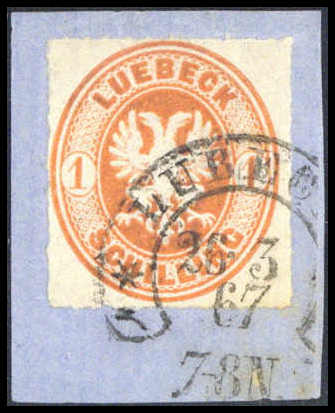 1 Sch., Luxus-Briefstück mit klarem Hufeisenstempel LÜBECK 26/3 67, Fotobefund Brettl BPP. Katalogpreis: 200,-+