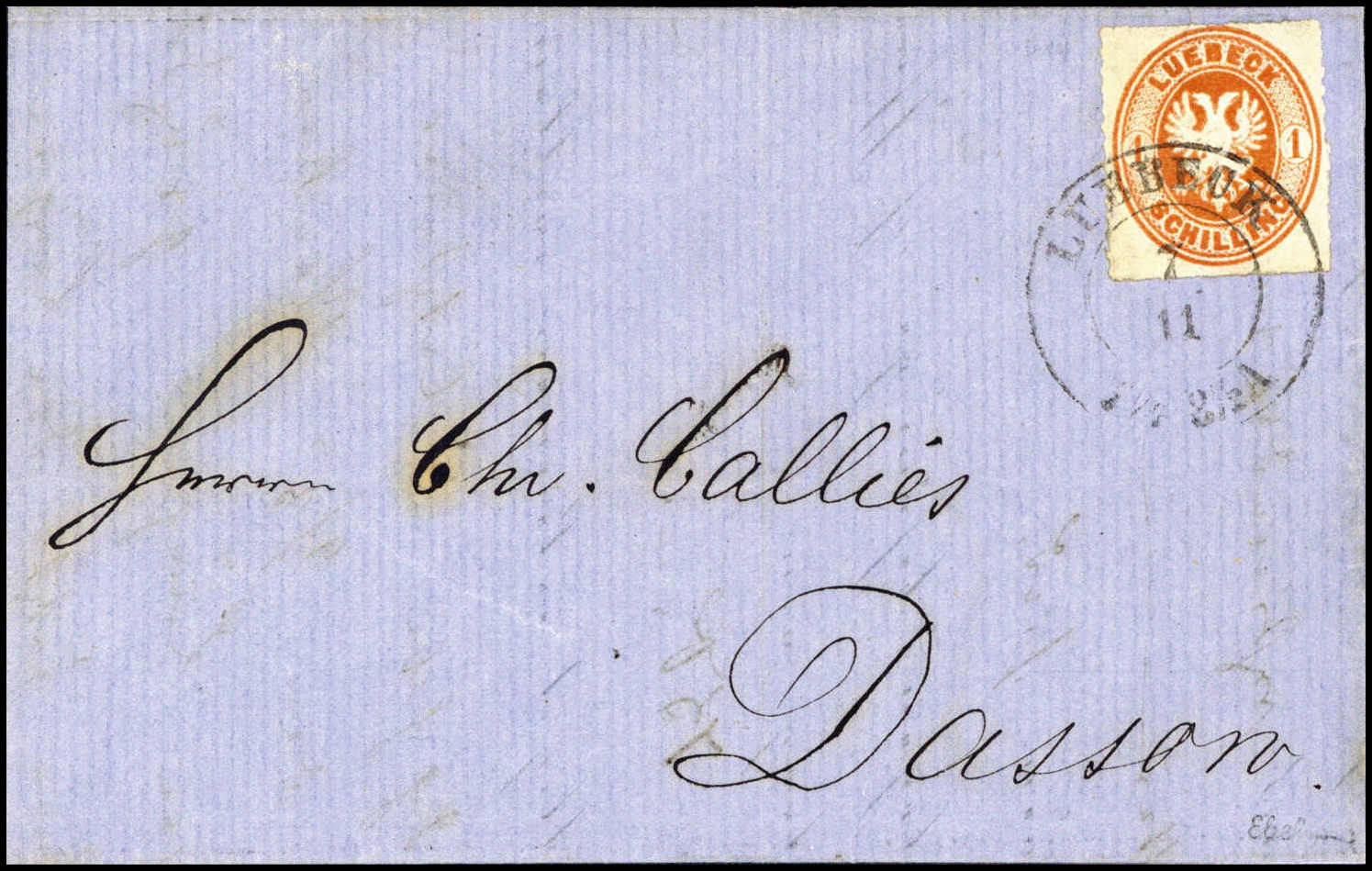 1 Sch., Luxusbrief mit schönem K2 LUEBECK nach Dassow, sign. Ebel. Katalogpreis: 450,-+