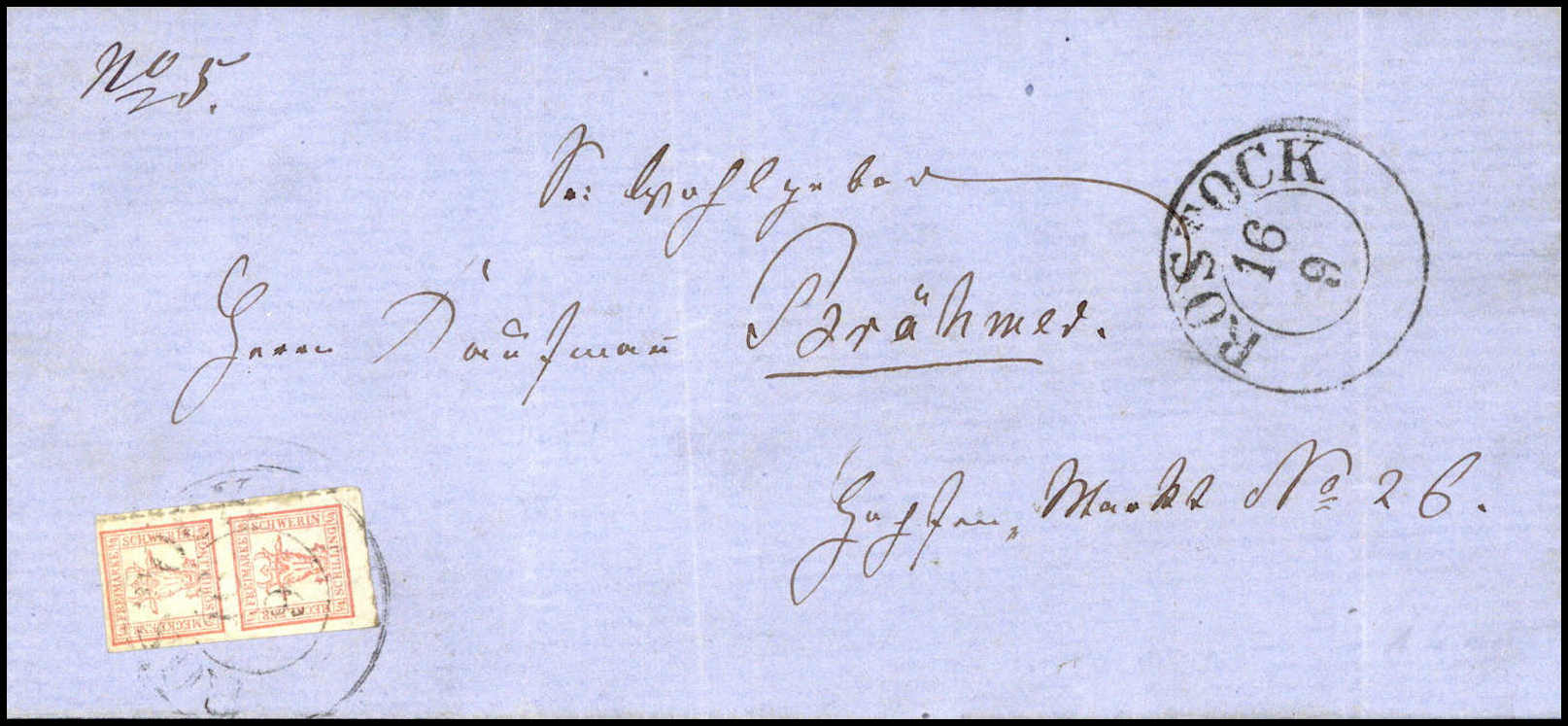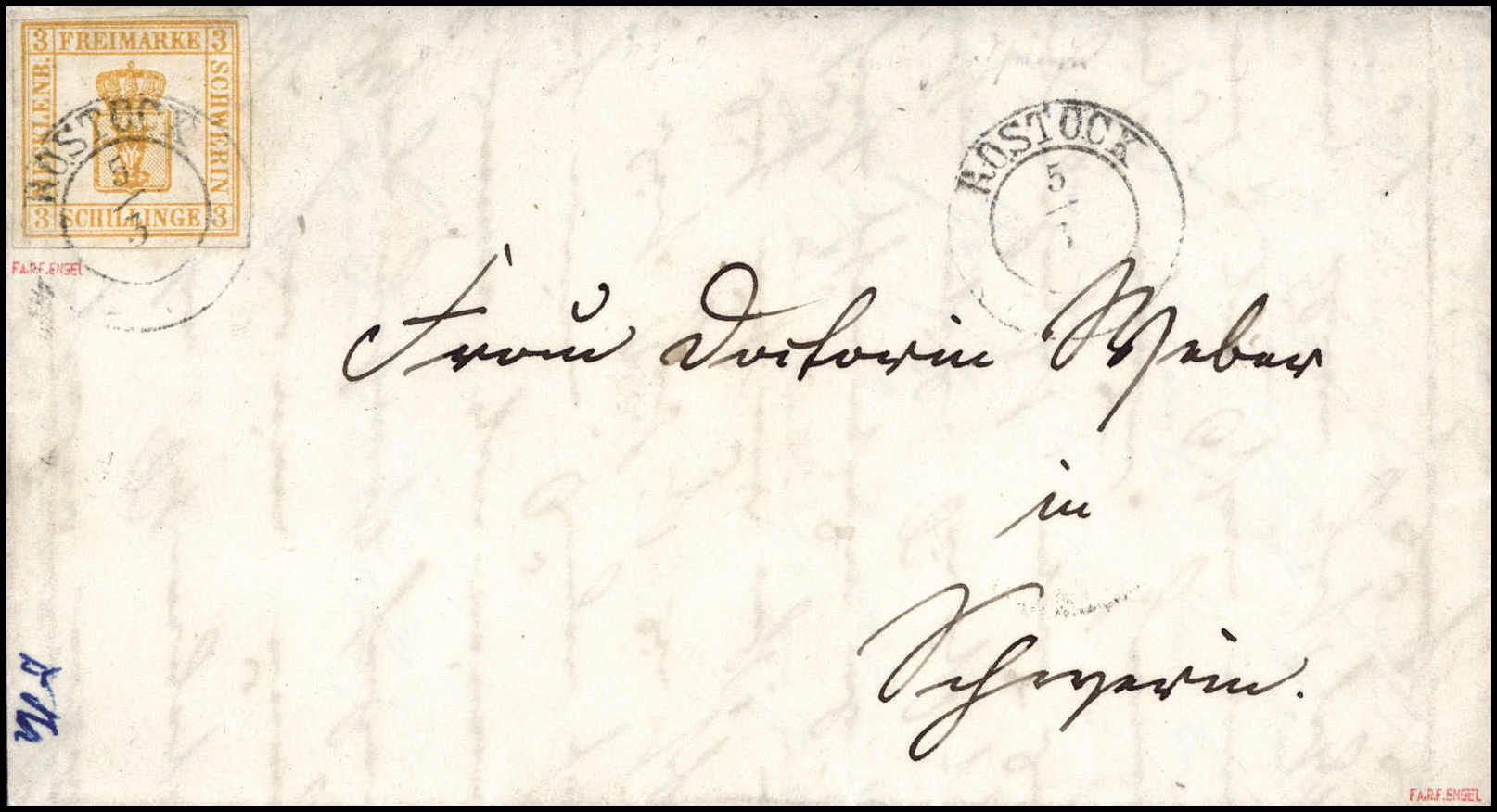3 Sch., Kabinettbrief mit schönem K2 ROSTOCK nach Schwerin, sign. Engel