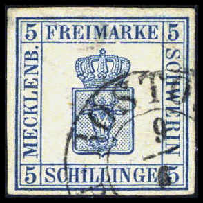 5 Sch., Prachtstück mit klarem K2 WISMAR und Federstrich. Katalogpreis: 400,-