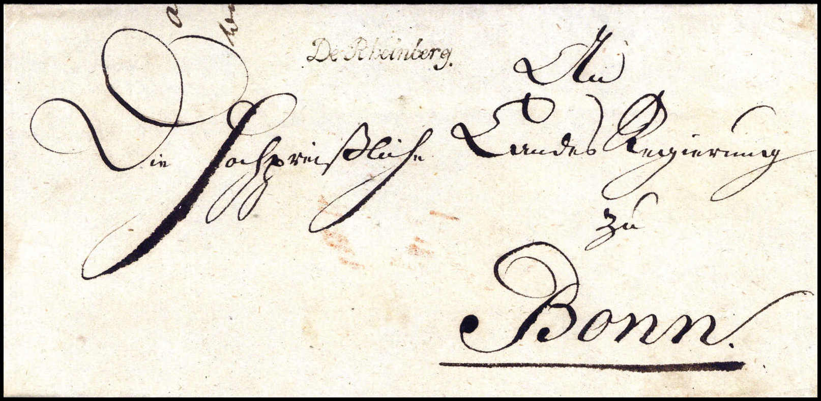 1797, "De Rheinberg", L1 klar auf datierter Briefhülle nach Bonn (Hb. 2939-1)