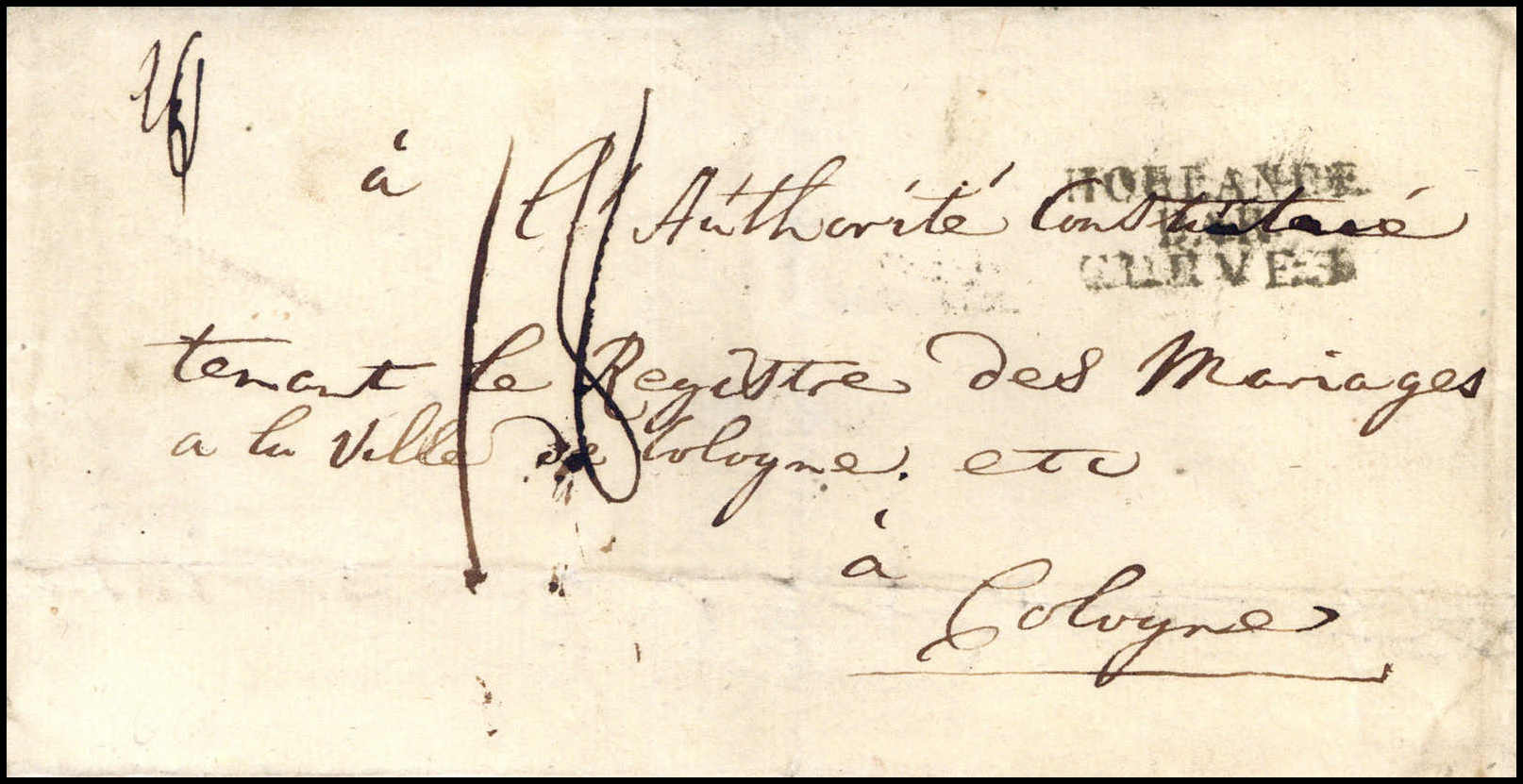 (1809), HOLLANDE PAR CLEVES, L3 voll auf Brief nach Köln (Beförd.-Spuren)