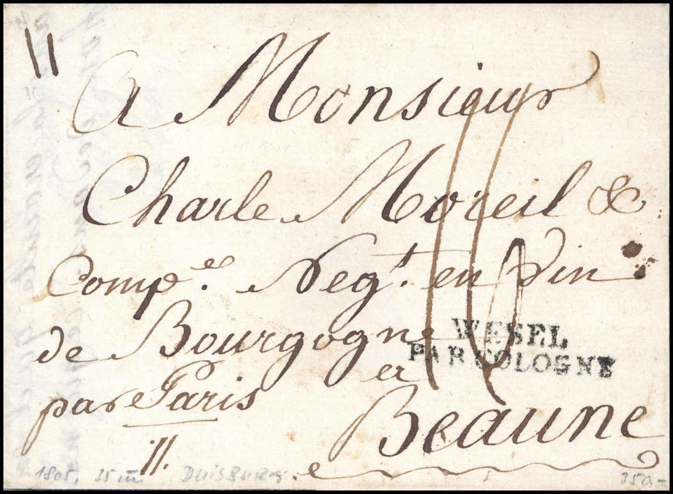 1805, WESEL PAR COLOGNE, L2 vorzüglich klar auf Kabinettbrief von Duisburg nach Frankreich