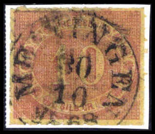 10 Sgr., ein außergewöhnliches Luxusstück mit vollständigem Durchstich und ohne jede Farbabsplitterung, ideal aufges. Taxis-K1 MEININGEN. In dieser Qualität ein Ausnahme-Exemplar für hohe Ansprüche, Fotoattest Pfenninger aus August 1956