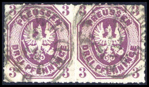 3 Pfg. dunkelpurpur, besonders farbfrisches waagr. Kabinettpaar mit zwei zentr. Taxis-K1 ESCHWEGE. Eine seltene Einheit, sign. Pfenninger. Katalogpreis: 1.000,-