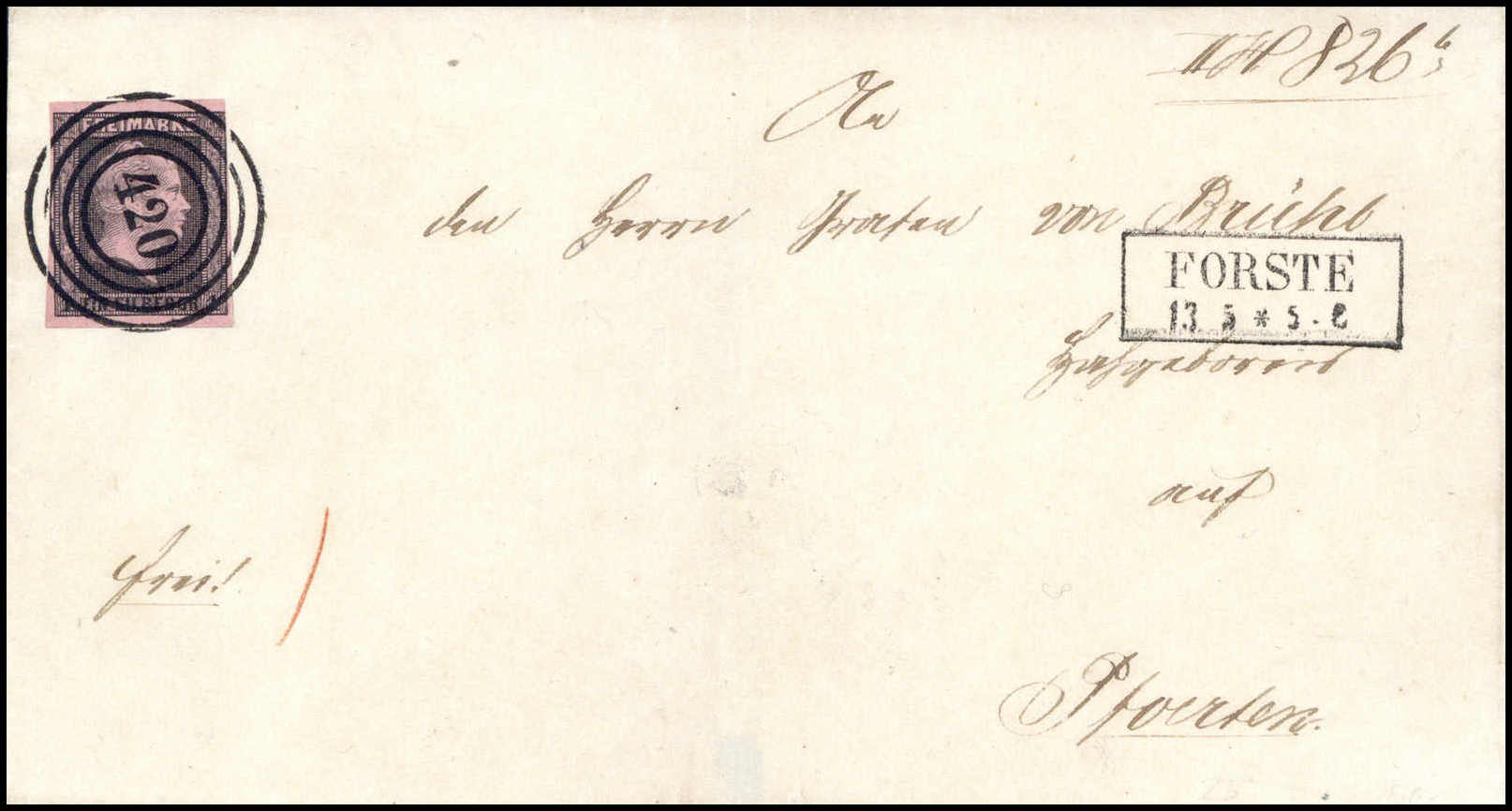 "420" FORSTE, wie gedruckt auf aktenfrischem Brief 1 Sgr. (winz. knapp)