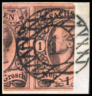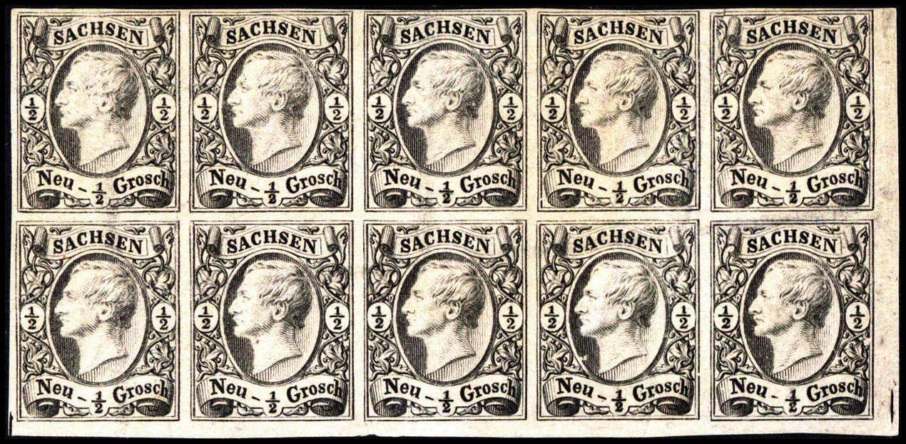 bekannte Originalbogen dieser Marke auf dem gemaschten Papier. Eine Sachsen-Rarität, Fotobefund Vaatz BPP