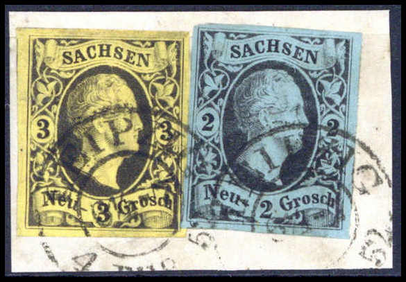 1 Ngr., zwei halbe Exemplare zusammenhängend auf Briefstück mit ideal aufges. Stempel "1" DRESDEN. Ein außergewöhnliches Stück, Fotobefund Vaatz BPP ("Mir ist bis jetzt keine weitere Kuriosität bekannt")