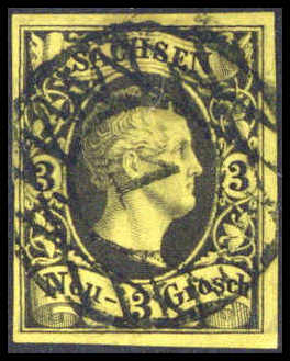 3 Ngr., extrrem groß geschnitt. Luxusstück mit genau zentr. Stempel "1"