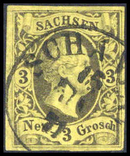 3 Ngr., breitrandiges Prachtstück mit seltener Entwertung durch K1 SCHANDAU