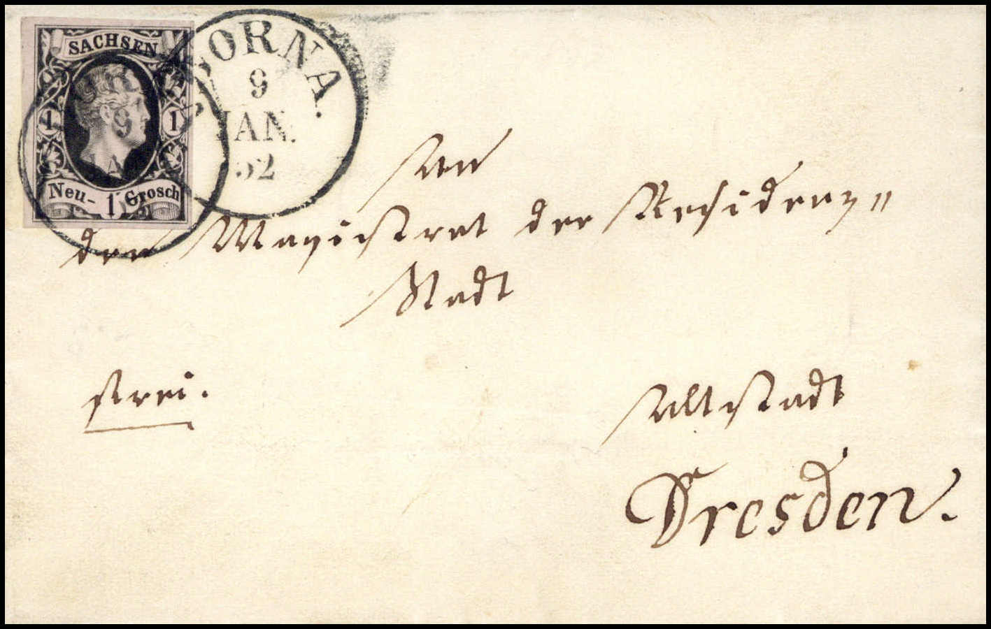 1 Ngr., Luxusbrief mit sauber aufges. K1 BORNA 9/1 52