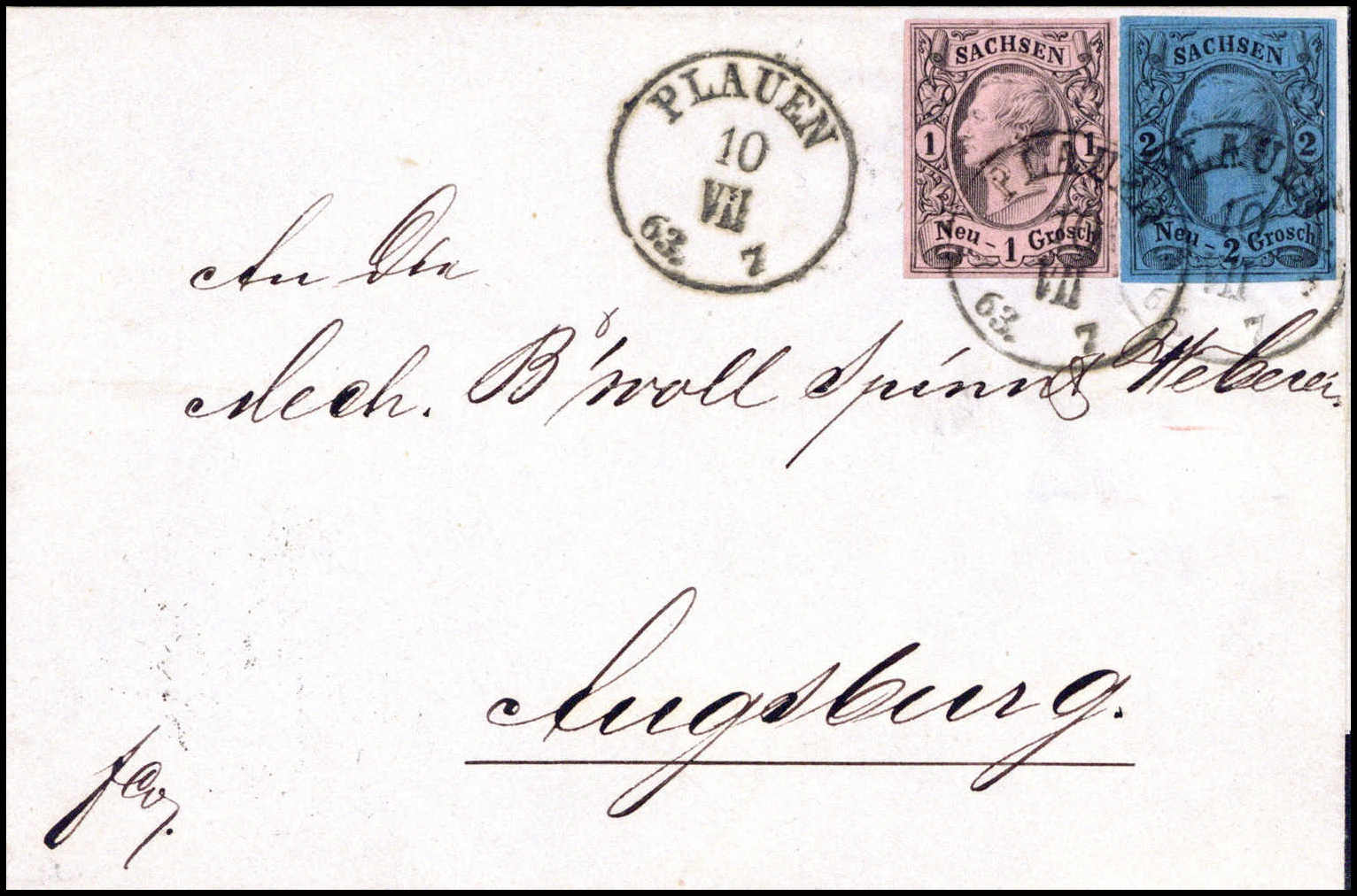 1 und 2 Ngr., Luxusbrief mit sauber aufges. K1 PLAUEN 10/7 63