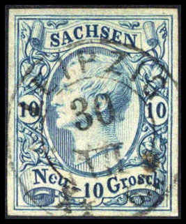 10 Ngr. dunkelblau, breitrandiges Luxusstück mit idealem K2 LEIPZIG. Katalogpreis: 400,-