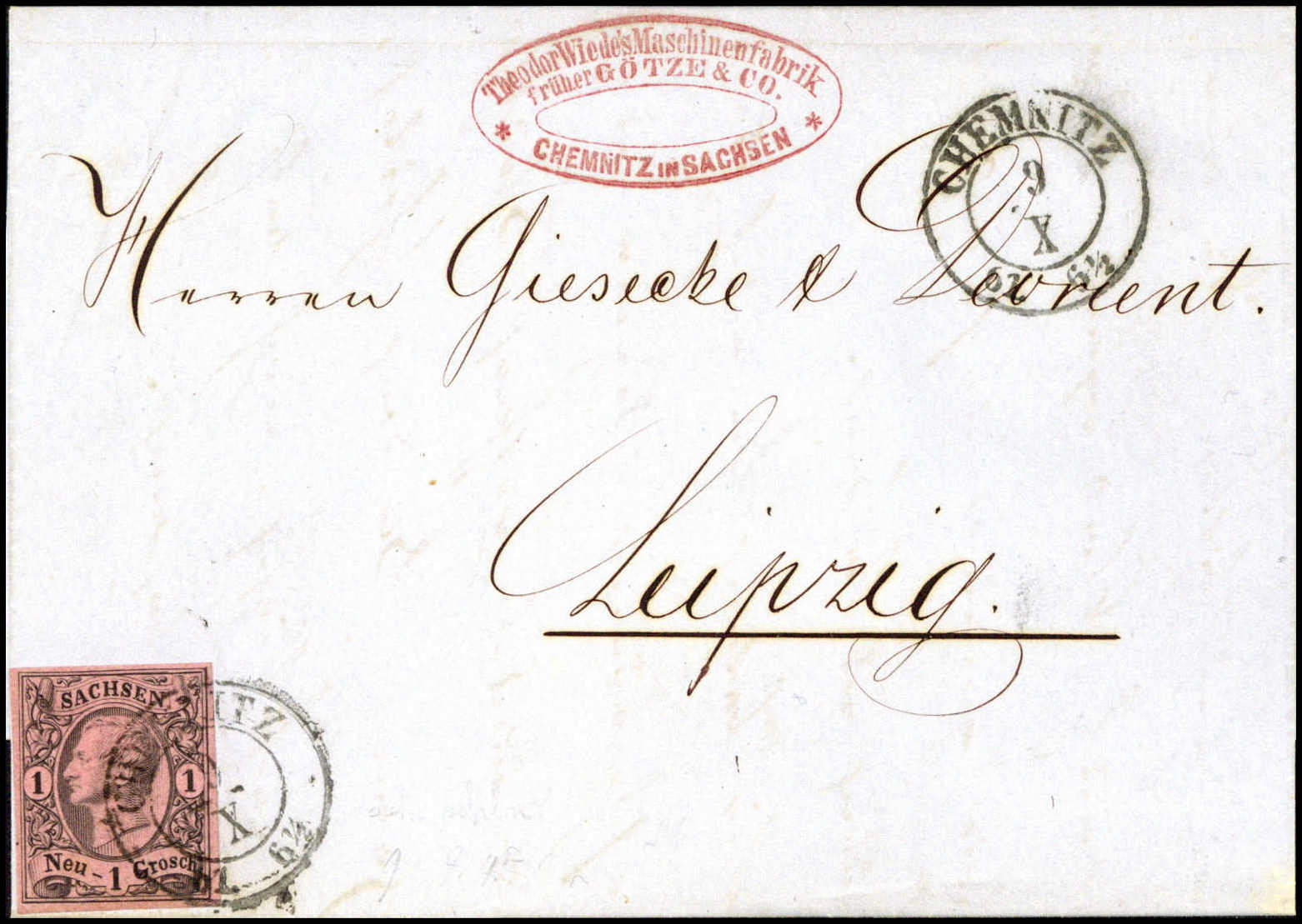 1 Ngr. feuerrot, Luxusstück mit klaren K2 CHEMNITZ auf schönem Faltbrief nach Leipzig, Fotobefund Vaatz BPP. Katalogpreis: 280,-