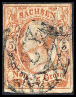 5 Ngr. lebhaftorangerot, Prachtstück mit Stempel "2" LEIPZIG, Fotobefund Rismondo BPP. Katalogpreis: 400,-