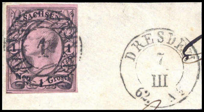 1 Ngr., Luxus-Bfstk. mit idealem Stempel "1" und beiges. K2 DRESDEN. Katalogpreis: 120,-+