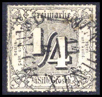 ¼ Sgr., zentr. gestempeltes Prachstück, unten min. Knitterspur, wohl von der Drucksache, sign. Dr. Sommer BPP, Pfenninger. Katalogpreis: 1.300,-