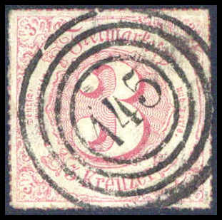3 Kr., Luxusstück mit gestochen klarem, zentr. Stempel "145" OSTHOFEN