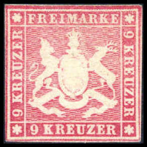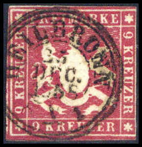 9 Kr. dunkelkarmin, besonders tieffarbiges Exemplar mit klarem K3 HEILBRONN (kl. Aufrauhung), Fotobefund Heinrich BPP. Katalogpreis: 1.200,-